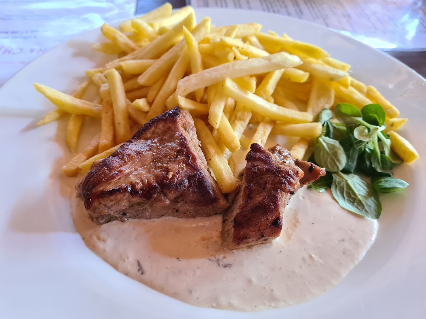 - Steak z vepřové panenky s hříbkovou omáčkou