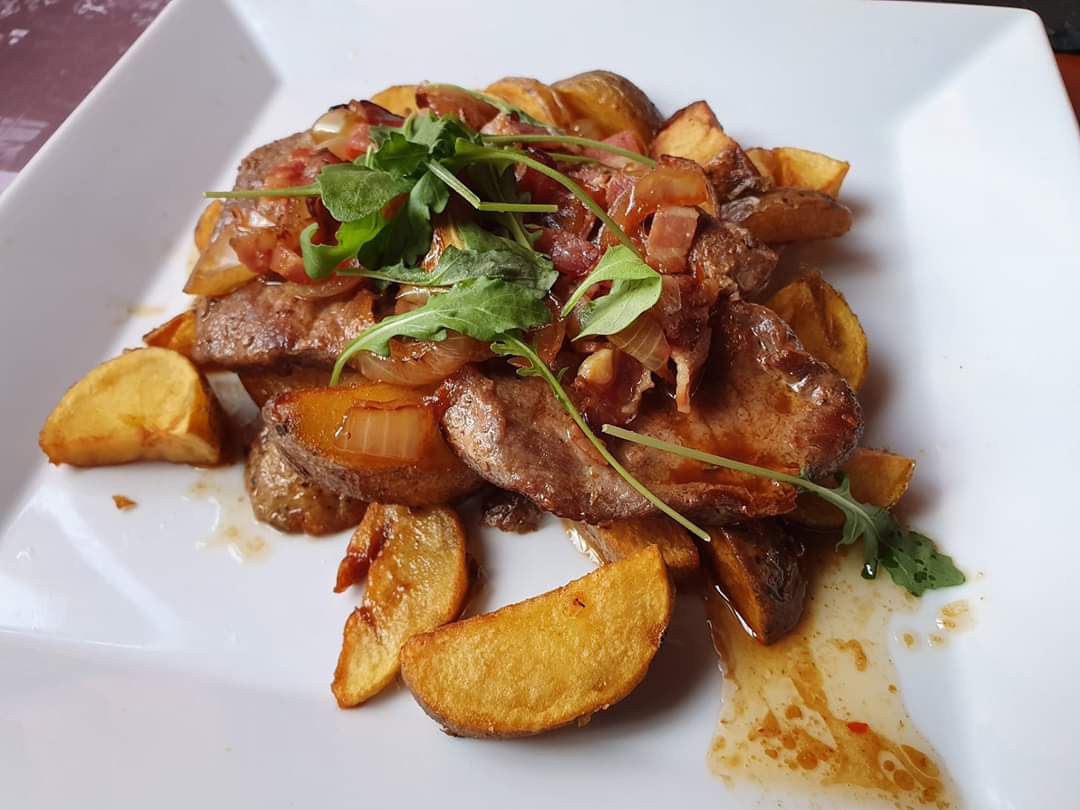 - Hlavní chody: Smažený sýr (smažák), smažené nivové koule, krkovička, panenka