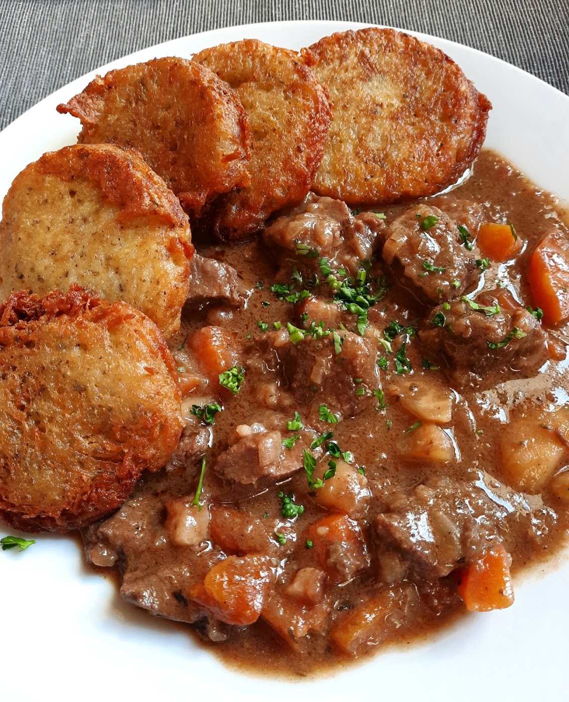 - Restovaná krůtí jatýrka na červeném víně a slanině
