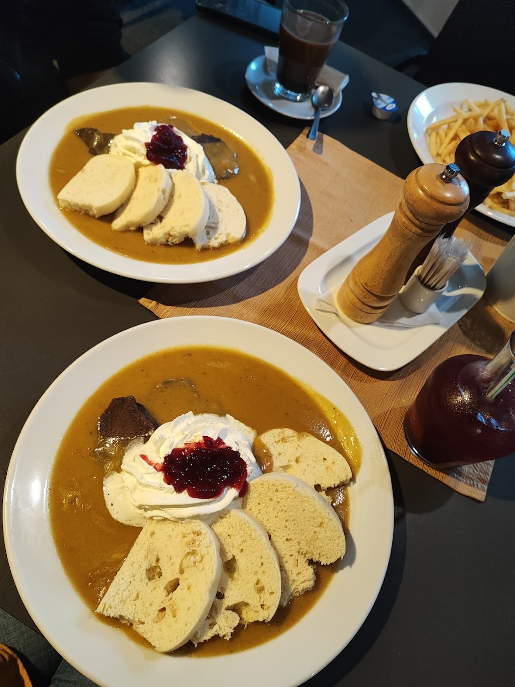 - Velké porce knedlíků a tataráku