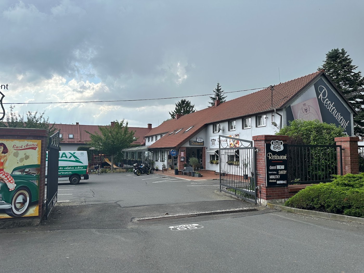 Restaurace ROUTE 66 RESTAURANT je oblíbená mezi návštěvníky díky svému motorkářskému stylu, příjemné atmosféře a dobrému jídlu. Mnoho hostů oceňuje stylový interiér, venkovní posezení a dětské hřiště. Recenze ukazují, že jídlo je chutné a kvalita servisu je solidní, i když existují menší stížnost...