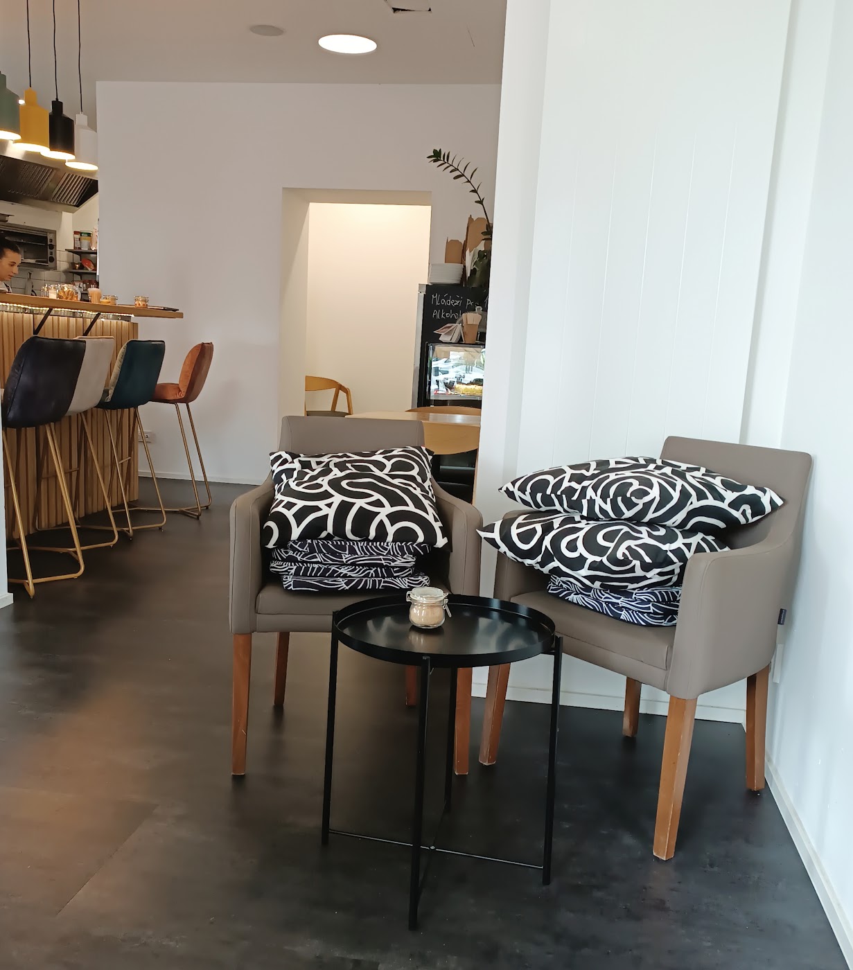 - Prostředí je vzdušné, čisto a s přímým výhledem do kuchyně