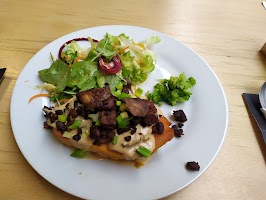 Nabízí veganská jídla. Cena menu 199,- Kč (polévka • hlavní chod). Hlavní chod 179,- Kč. Polévka samostatně s pečivem 60,- Kč. Příplatek za bezlepkové pečivo 15 Kč/ks.