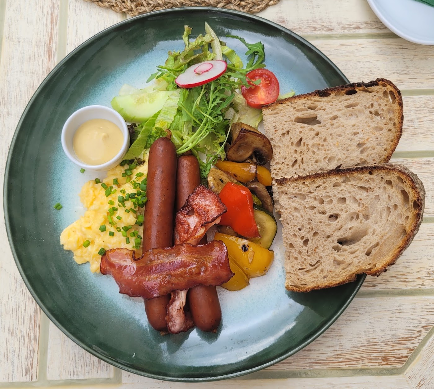 - Skvělá bageta s míchanými vajíčky a slaninou