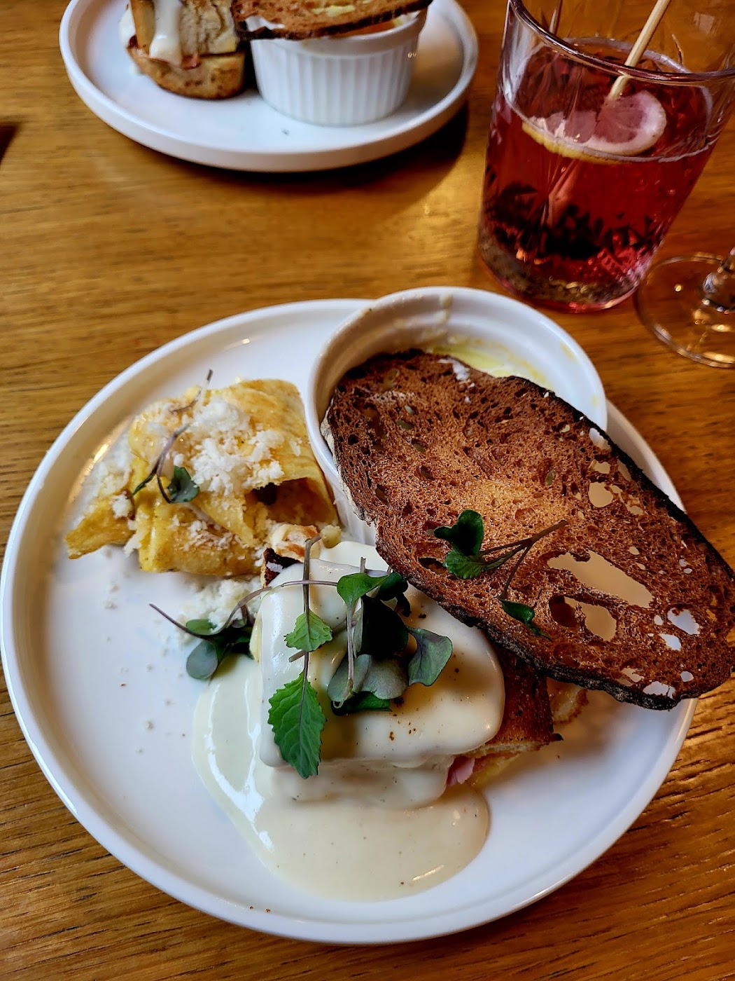 - Zapečený chleba se šunkou, sýrem a volským okem