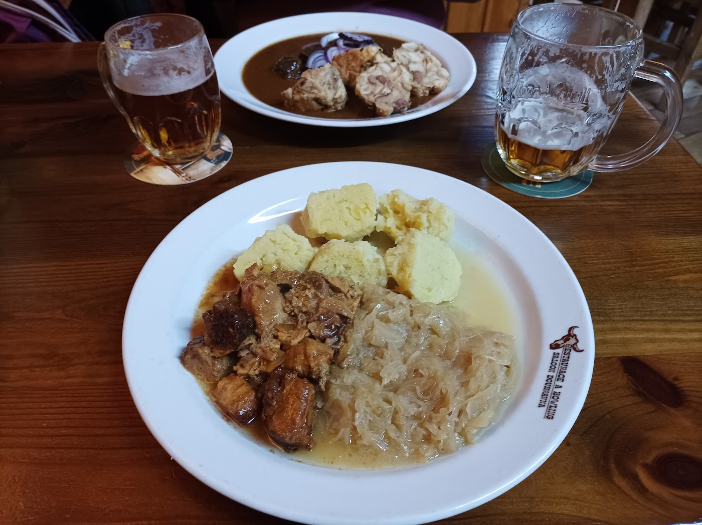 - Menu obsahuje chutná jídla jako výpečky a kančí guláš