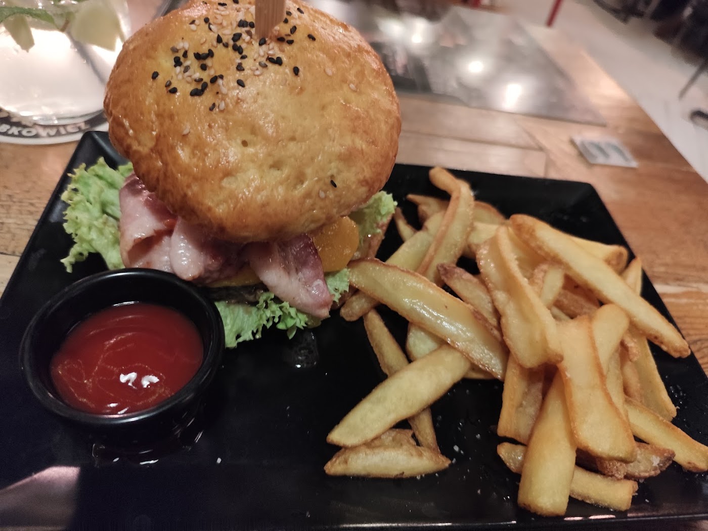 - Jídla byla často průměrná nebo zklamávající (např. burger, nachos)