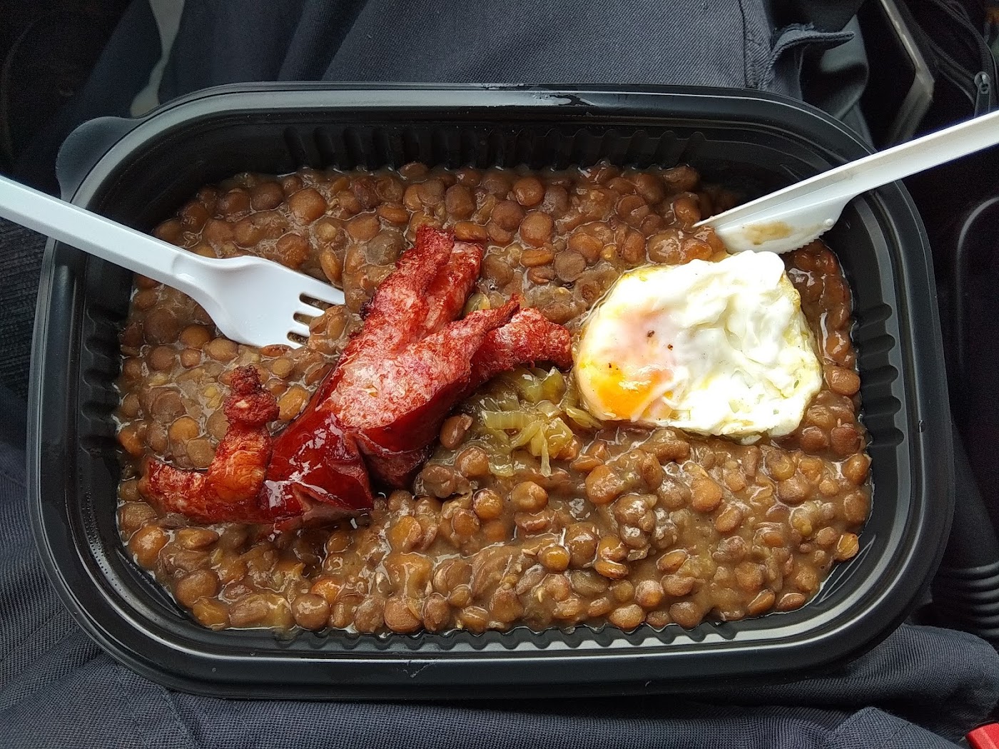 - Čočka na kyselo s uzeninou, volským okem a cibulkou