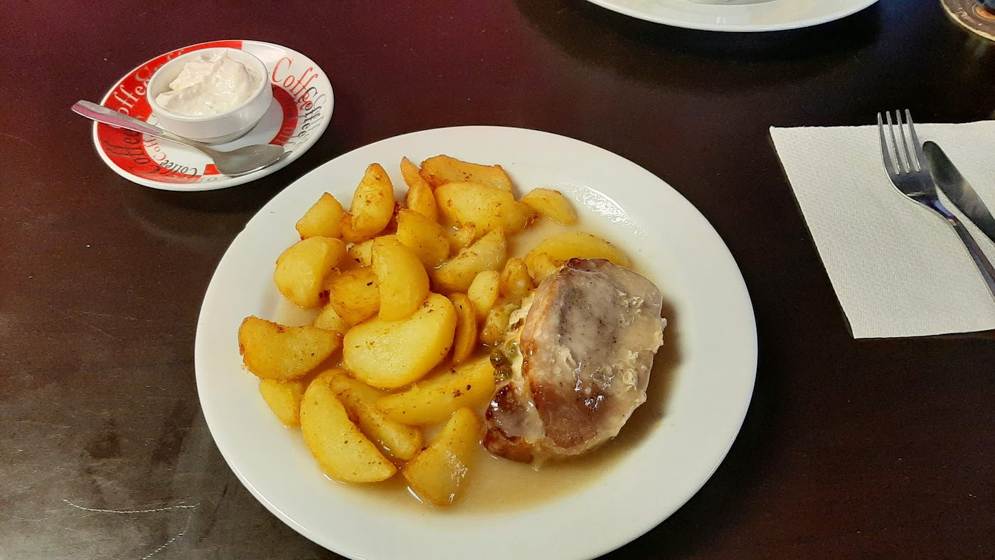 - Vepřový řízek s bramborovým salátem