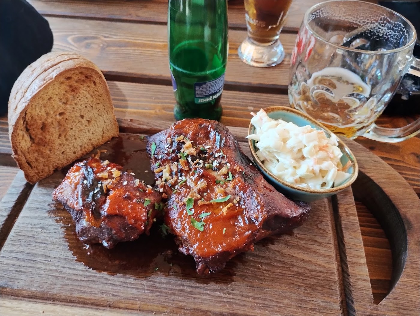 - Chutné jídlo, zejména burger a žebra
