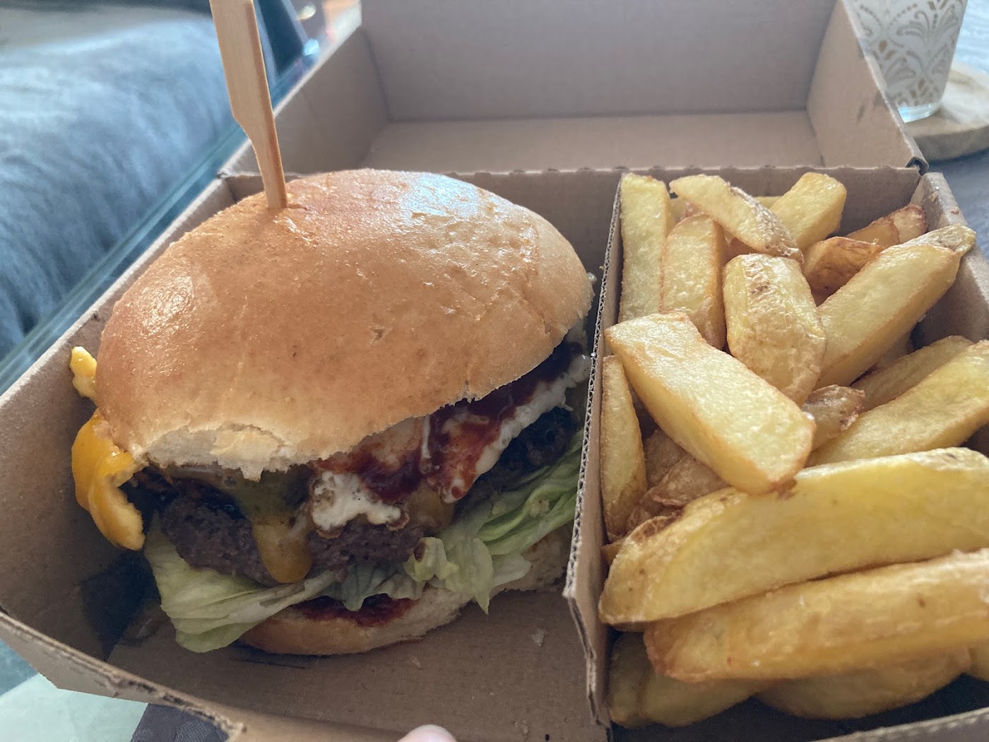 - Burger byl suchý a nevýrazný