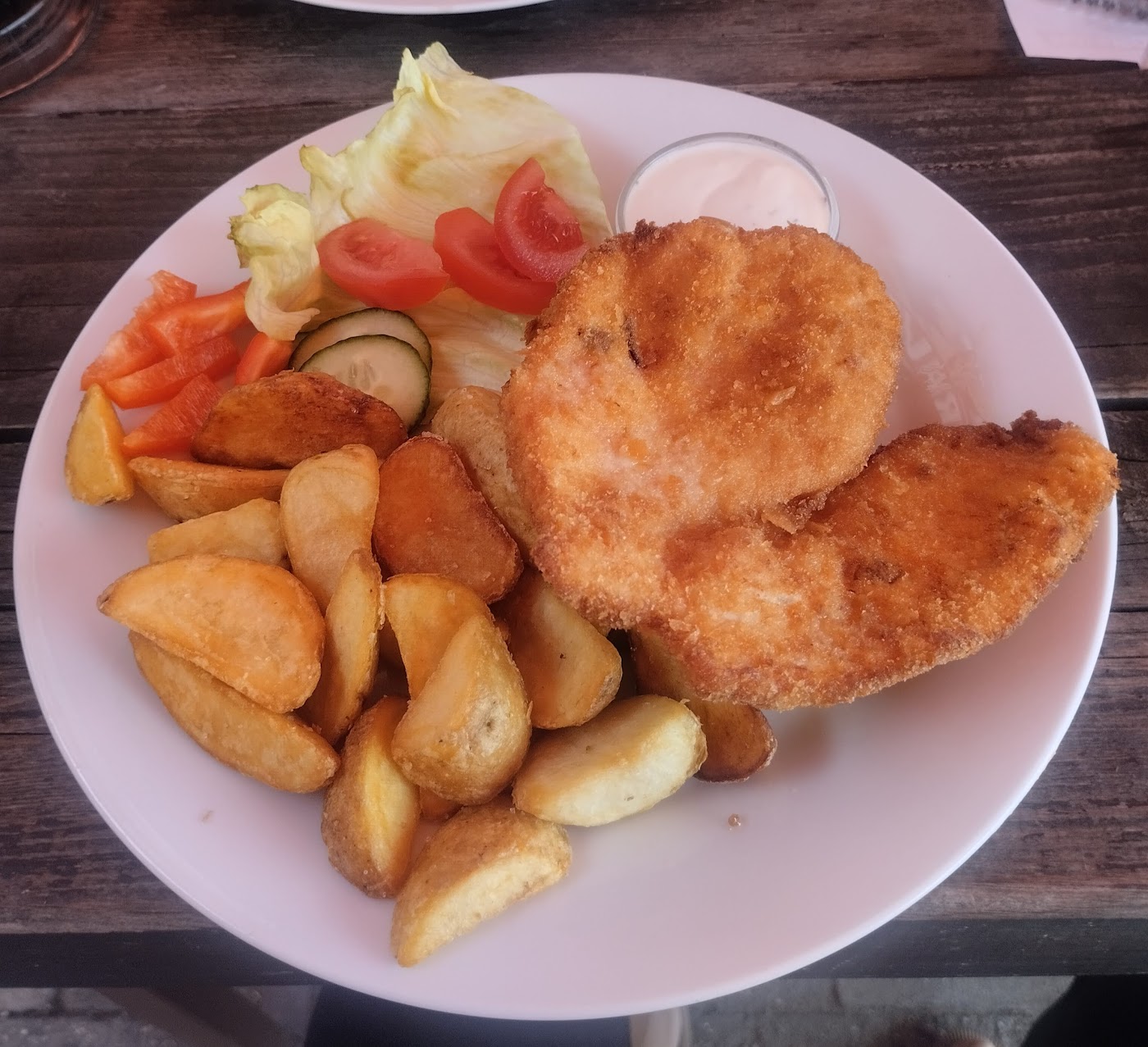 - Kuřecí řízek s hranolkami
