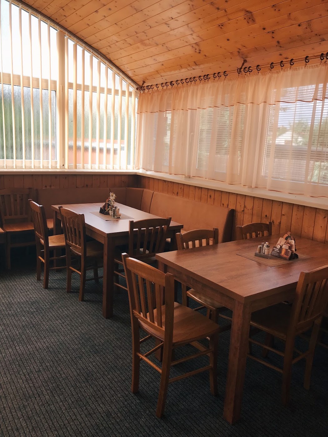 - Starší vybavení restaurace