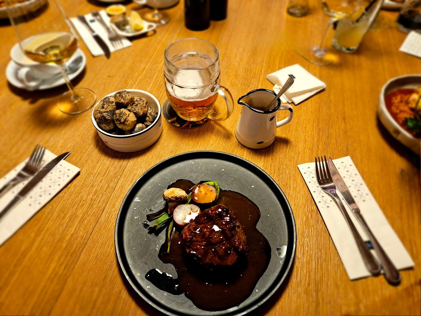 - Některé drobné detaily v jídle, jako množství hranolek nebo intenzita lanýžové omáčky, by mohly být vylepšeny.