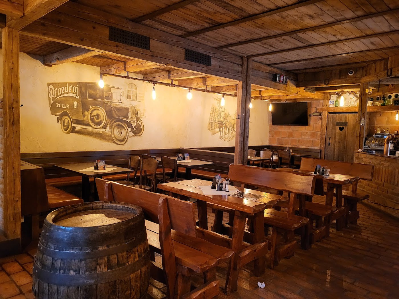 - Příjemné dřevěné prostředí a vtipně pojmenované WC