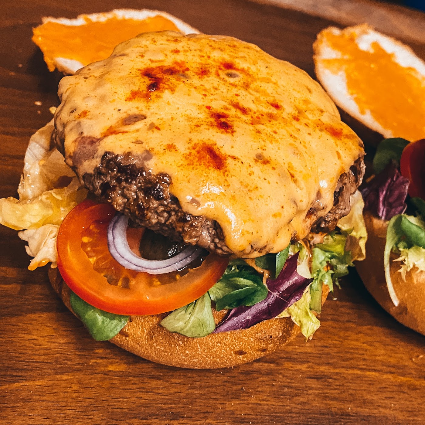 - Burger s červeným čedarem