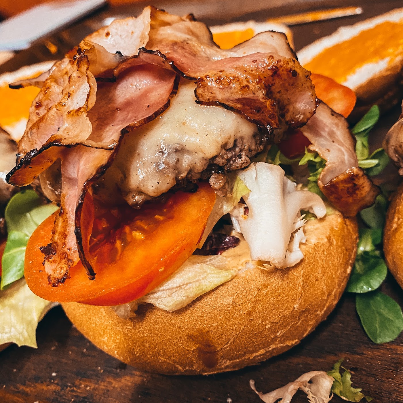 - Bacon burger s hranolkama