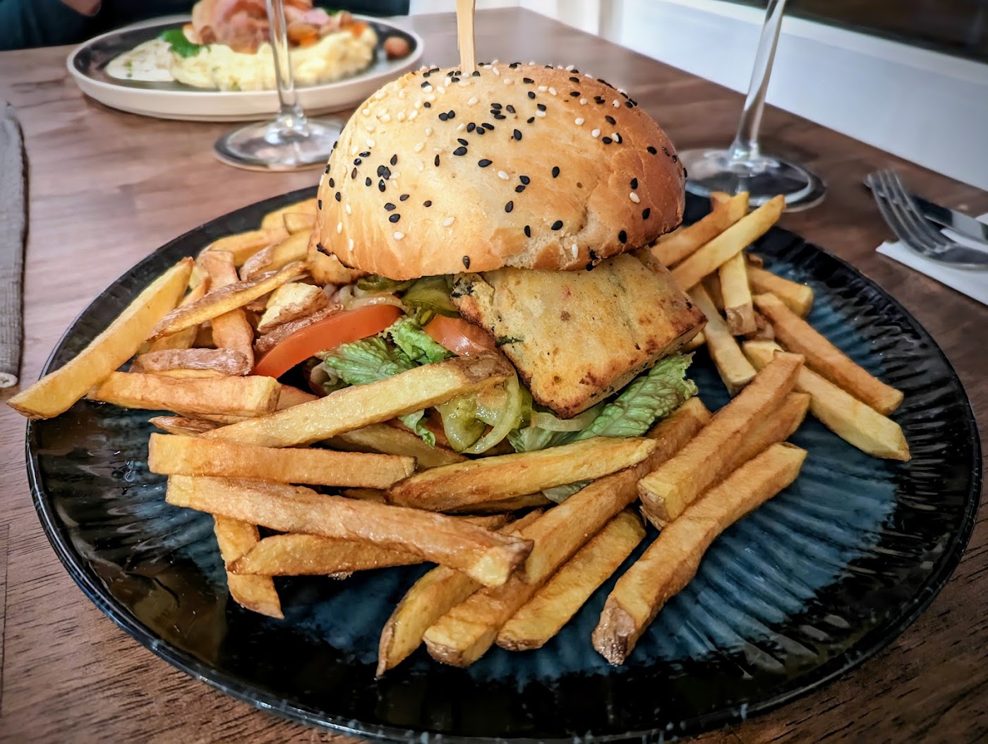 - Burger s pečeným tvarohem