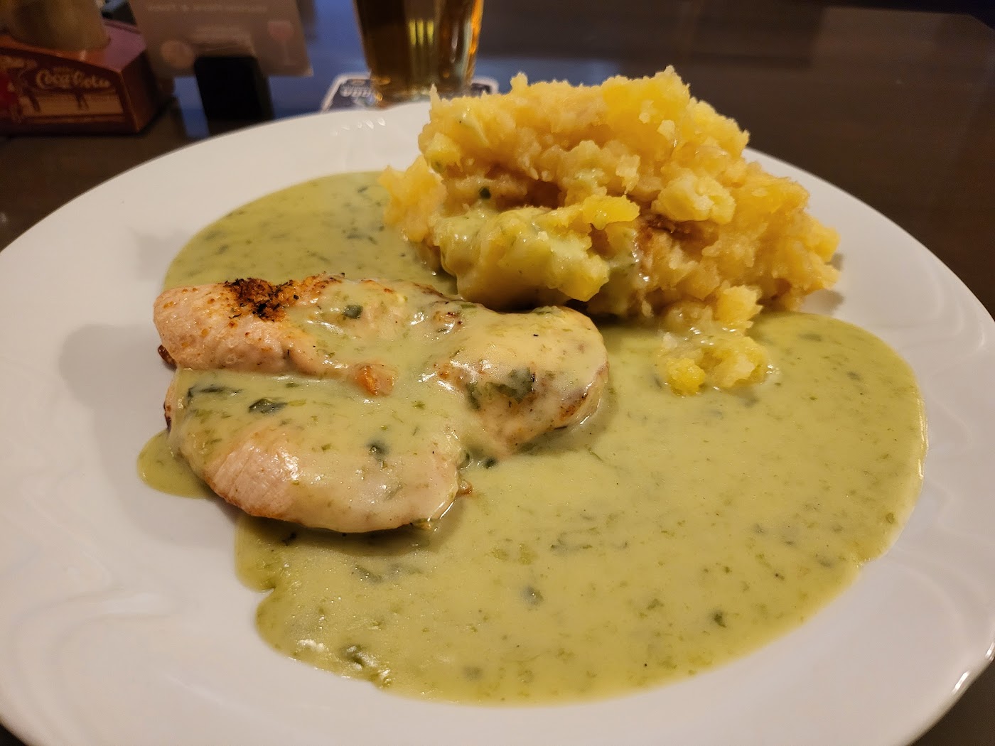 - Hovězí líčka na červeném víně s šťouchanými brambory se smetanou