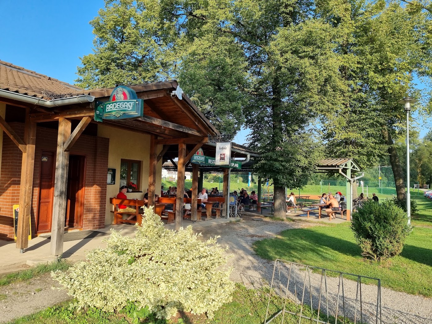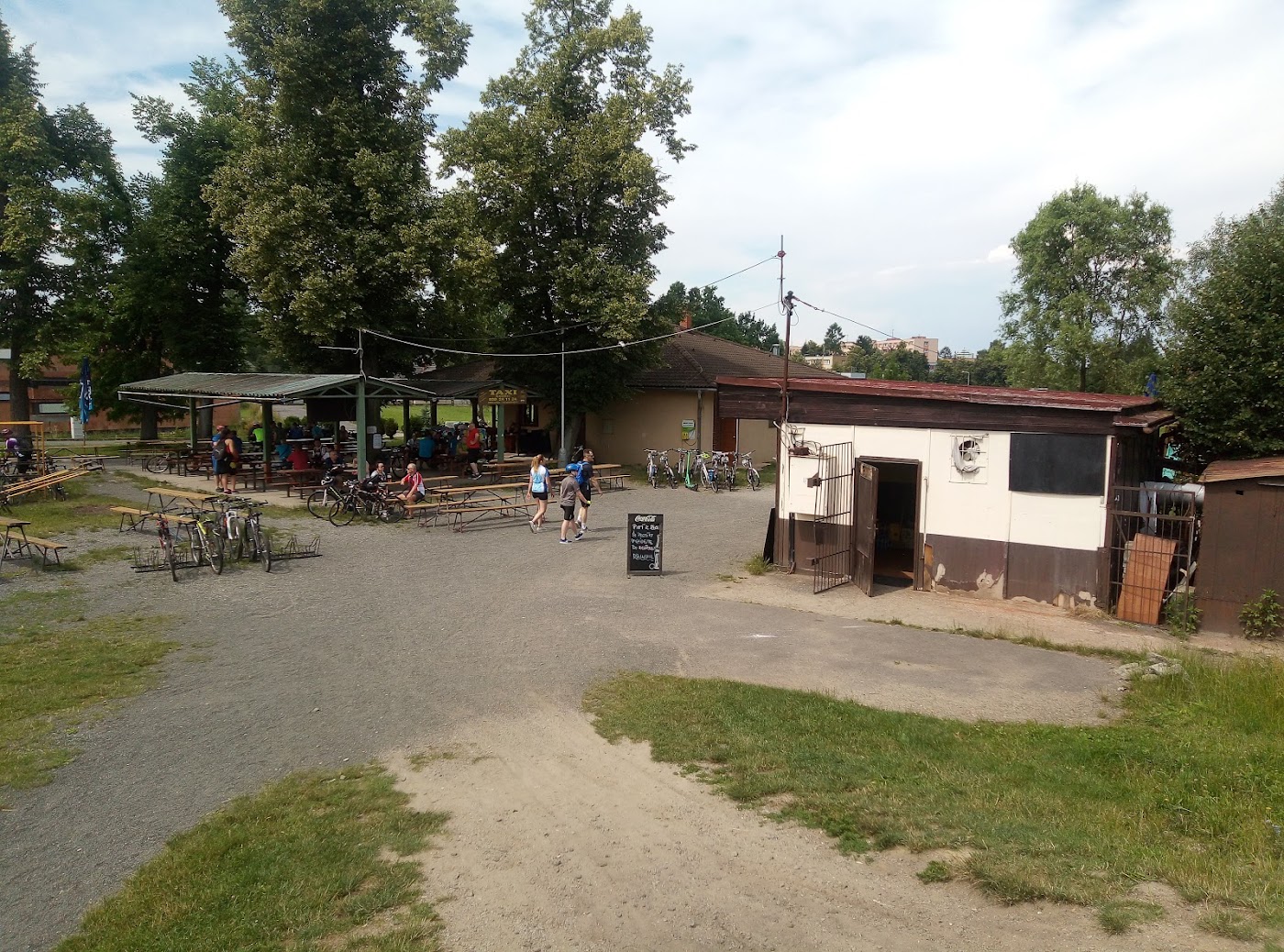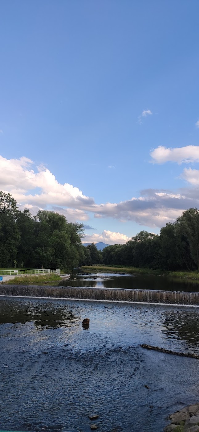 - Množství míst k sezení a hezké prostředí u řeky.