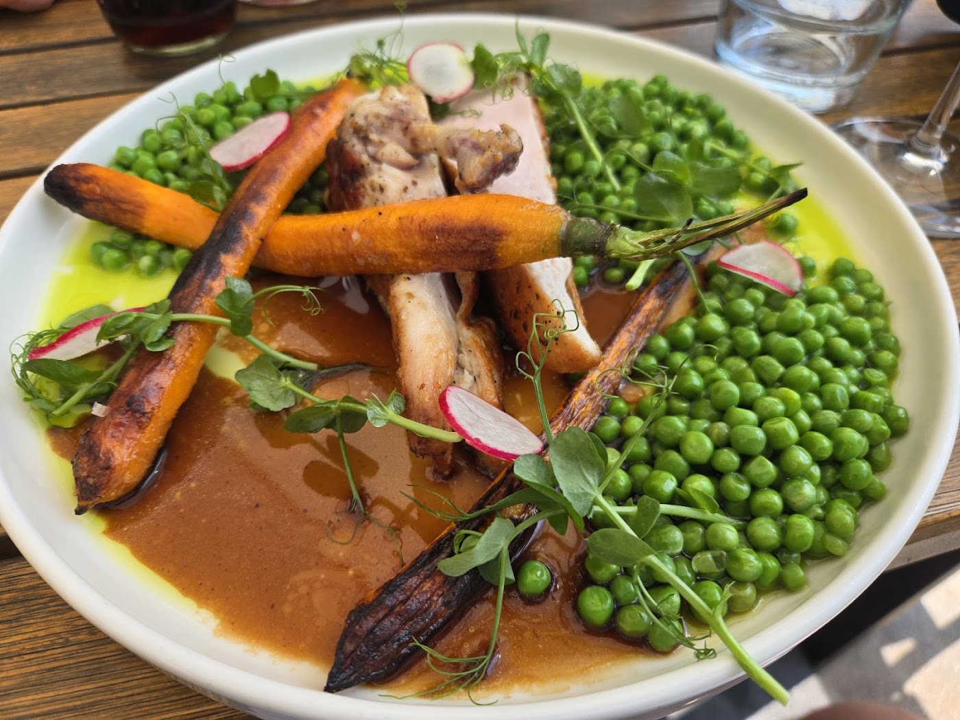 - Kuřecí sous vide na grilu s hráškovým a dýňovým pyré