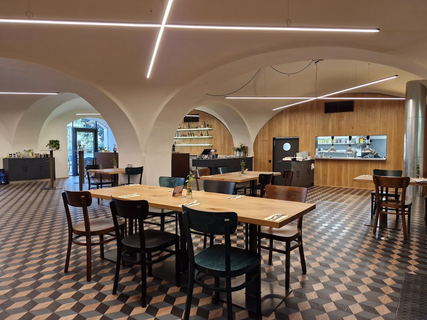 - Krásné umístění a design restaurace.