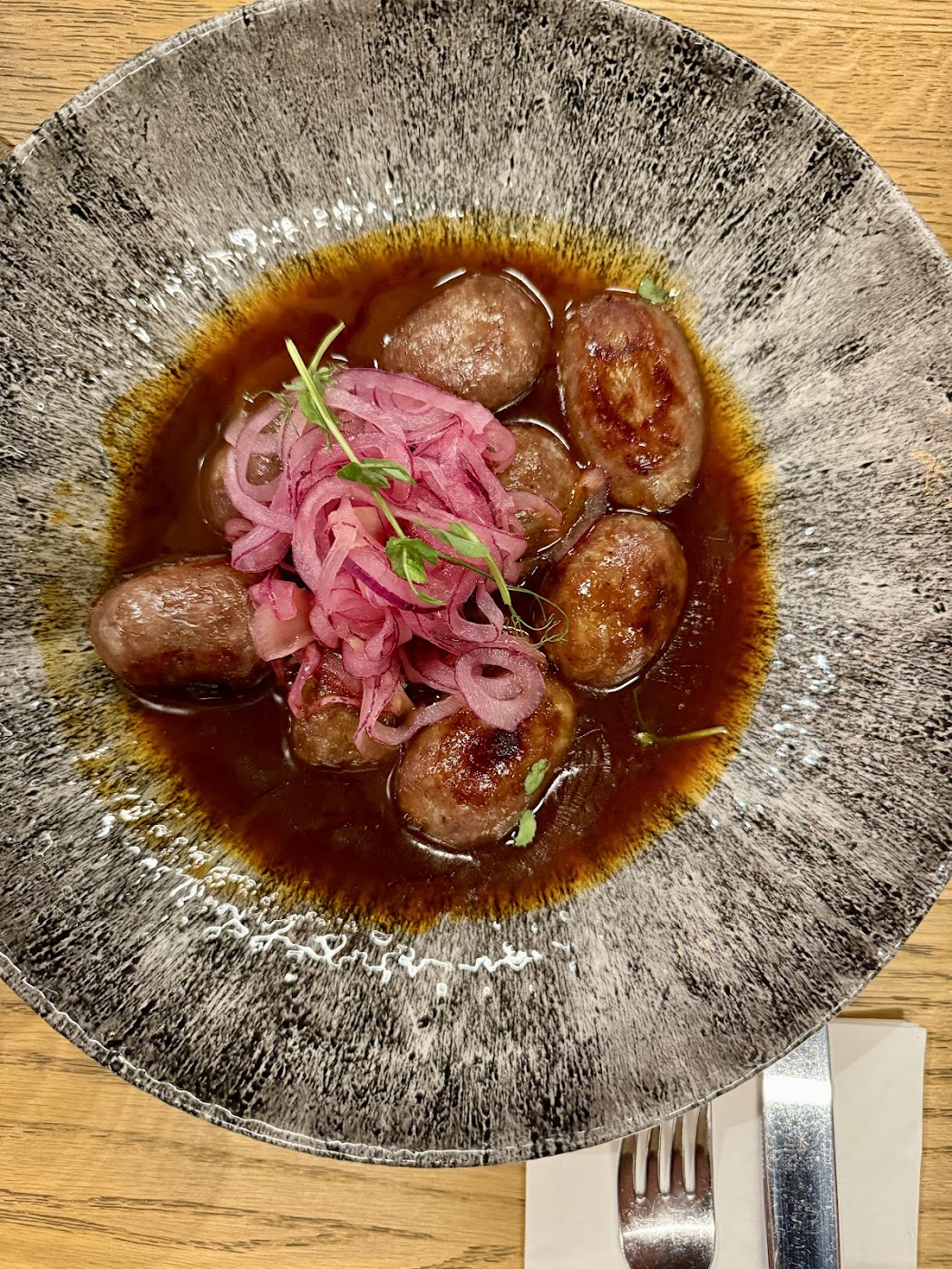- Fermentovaná klobáska s nakládaným zázvorem.