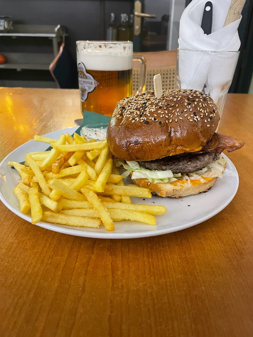 - Burger No.8 měl vysušené a spálené maso, suchou housku a přesolené hranolky.